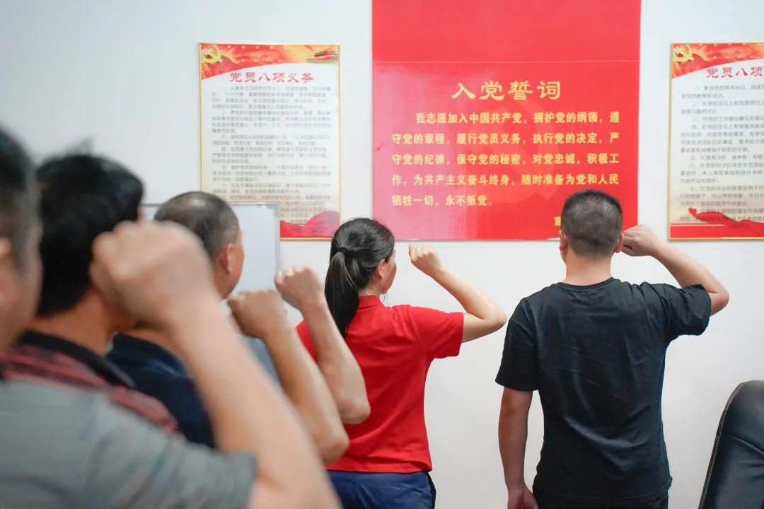在入黨介紹人陳明同志的領(lǐng)誓下,李海燕同志及全體黨員宣讀了入黨誓詞。參會(huì)同志們?nèi)w站立,表情嚴(yán)肅眼神堅(jiān)定,懷著為共產(chǎn)主義事業(yè)奮斗終身的信念,舉起右手莊嚴(yán)宣誓,錚錚誓言在大家耳邊縈繞,紅色種子在新黨員的心中悄悄埋下靜待發(fā)芽,黨的精神薪火相傳,生生不息。