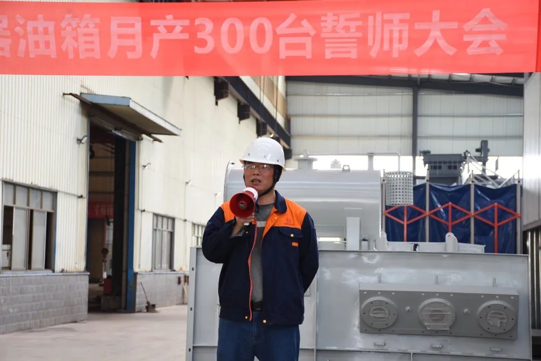 今天的宣誓在我們每個人的心中種下一個火種,將我們全體朝陽人團結一心、齊心協(xié)力、精益求精,不斷創(chuàng)新,不斷突破,服務好客戶,提升好自身。以做好明陽電器月供300臺變壓器油箱為起點,攻艱克難,持續(xù)追求卓越,不斷超越自我,做出一個客戶滿意、員工幸福、茁壯成長般“驕陽似火”的朝陽集團。