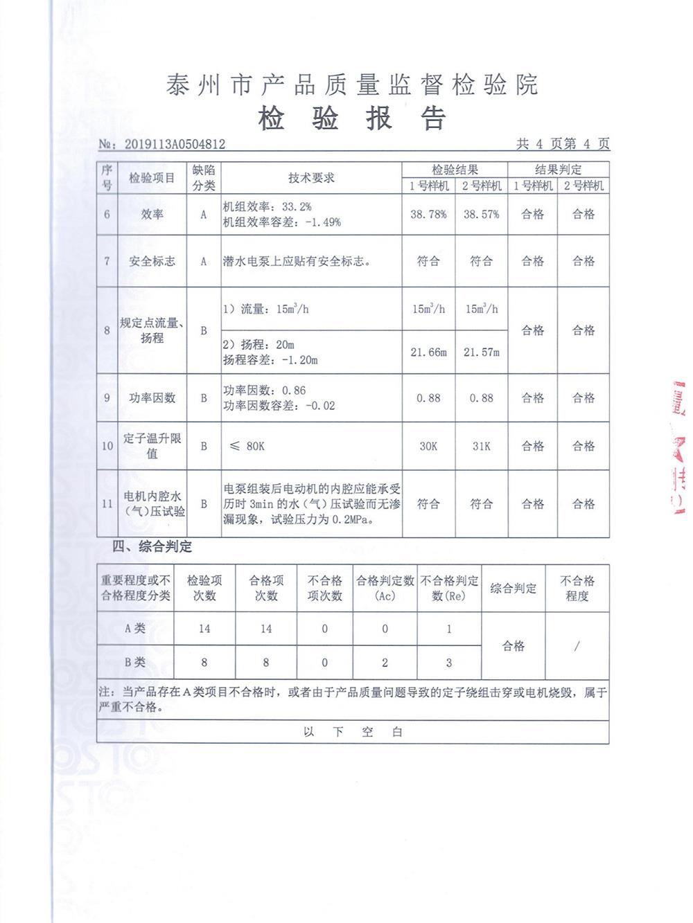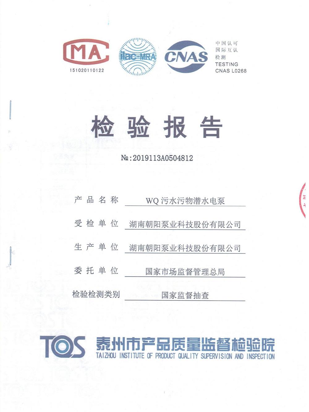 WQ污水污物潛水電泵檢測(cè)報(bào)告