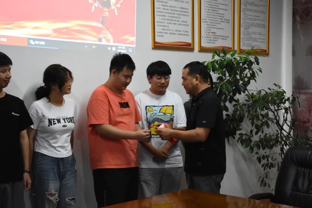 (企業(yè)領(lǐng)導(dǎo)給學(xué)生頒發(fā)獎學(xué)金)