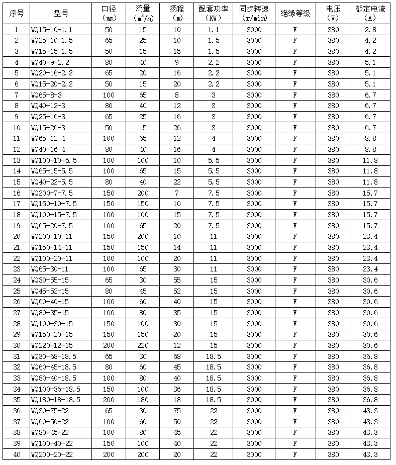 新一代WQ型污水泵除了具有無堵塞、防纏繞、節(jié)能效果優(yōu)良等特點外,公司自創(chuàng)的高精度泵體,雙流道的葉輪流道設(shè)計,大幅度提高流道通過性能,在使用過程中,效率高,功率曲線平坦,不易過載。